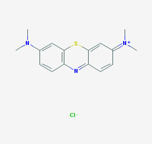 O Azul de metileno de fórmula C16H18ClN3S e peso molecular de 319,9 g/mol é também conhecido como Methylthioninium chloride, [7-(dimethylamino)phenothiazin-3-ylidene]-dimethylazanium;chloride), Methylthionine chloride, Basic blue 9, Blue Swiss, Chromosmon, Methylene Blue N
